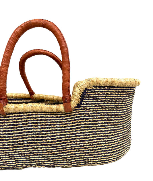 Moses Basket - Stripe Black and Natural - Hand woven Ghana Africa