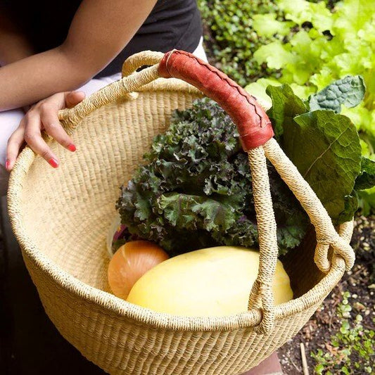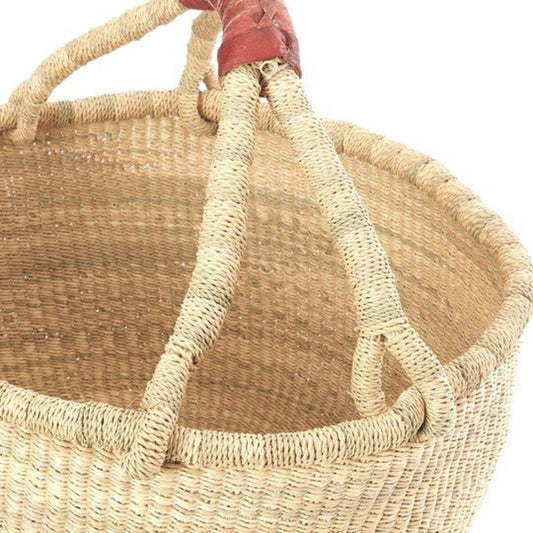 Bolga Market Basket - Small-Medium Round with Leather Handle